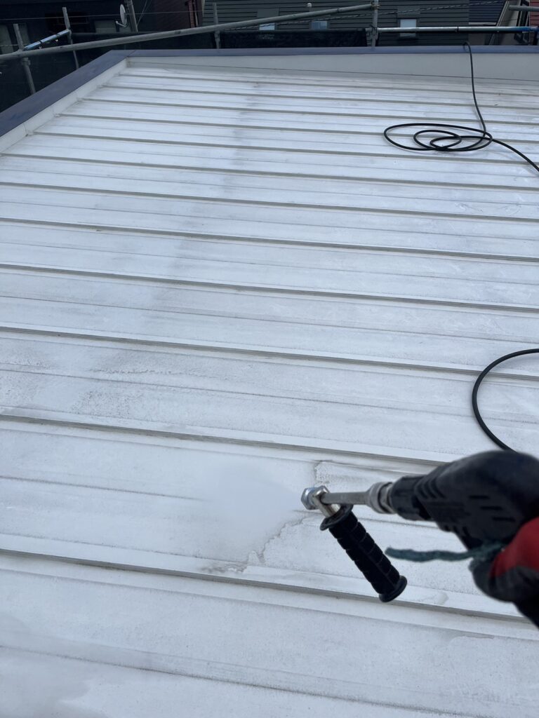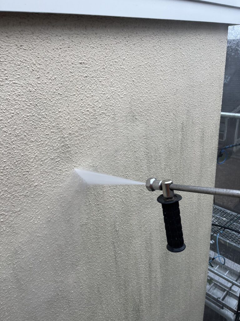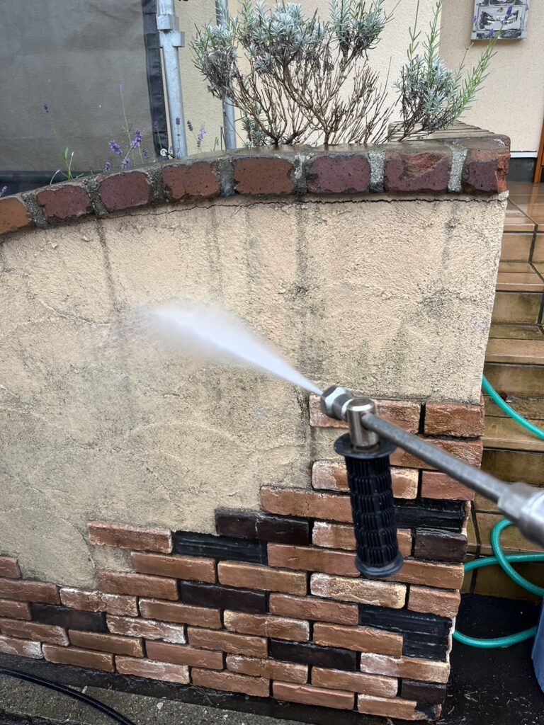 まずは塗装を始める前に汚れを落とし。高圧の洗浄機でバシャバシャ洗います!